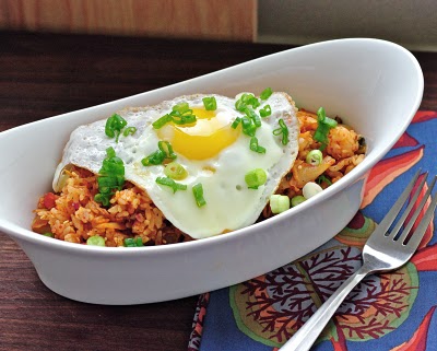 Masukkan nasi dan menggabungkan mereka dengan baik dengan campuran Kimchee atas api sedang. Tambahkan jus Kimchee dicadangkan untuk membasahi nasi goreng.